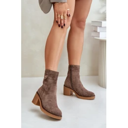 Ocieplane Botki Damskie Na Obcasie Słupku Brązowe Vailia