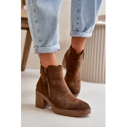 Ocieplane Botki Damskie Na Słupku Z Eko Zamszu Ciemnobrązowe Velarilla