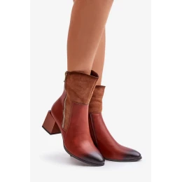 Zateplené dámske členkové topánky na podpätku Brown Relabina