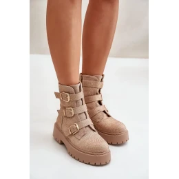 Zateplené dámske členkové topánky s béžovou ozdobou Ciascia