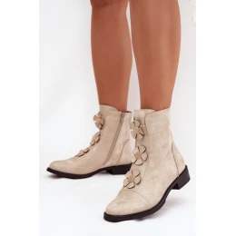 Zateplené dámské kotníkové boty na nízkém podpatku s ozdobnými květinami zlaté model 21711109 - Boto
