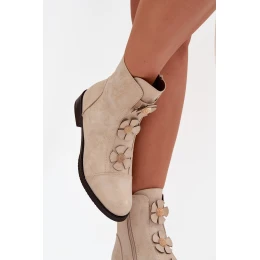 Ocieplane Botki Damskie Na Płaskim Obcasie Z Ozdobnymi Kwiatkami Złote Pravienne