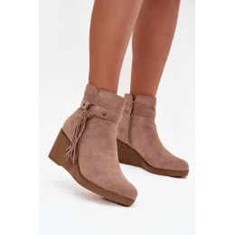 Zateplené dámské kotníkové boty na platformě s třásněmi béžové model 21711536 - Boto
