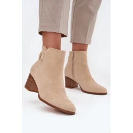 Ocieplane Botki Damskie Na Słupku Ze Złotym Detalem Beżowe Renora