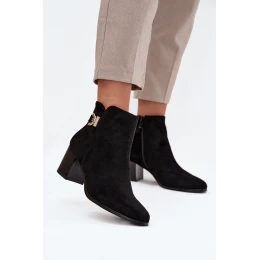 Zateplené dámské kotníkové boty na podpatku se zlatým detailem černé model 21708221 - Boto