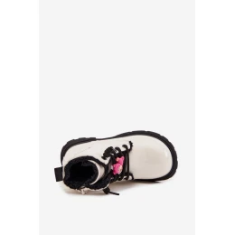 Zateplené detské lakované topánky s príveskom "Miś" - biele Jovellea