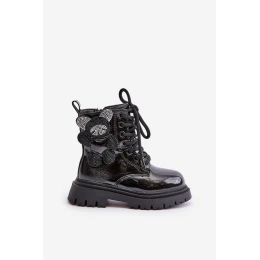 Zateplené dívčí botky s medvídkem na zip lakované černé Relobia