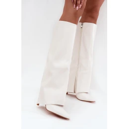 Zateplené kozačky na jehlovém podpatku s ohrnutým svrškem bílé model 21704872 - Boto
