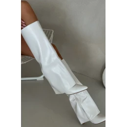 Ocieplane Kozaki Na Szpilce Z Wywiniętą Cholewką Białe Tamonia