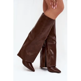 Zateplené Kozačky Na Jehlovém Podpatku S Svrškem Čokoládové model 21704865 - Boto