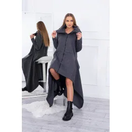 Představujeme vám módní šaty. Šaty mají kapuci, zapínání na zip a delší boky. Ideální každodenní poloha. Šaty jsou vyrobeny z vysoce kvalitní zateplené tkaniny. Velikost je univerzální a vyhovuje dámám, které nosí velikost S, M nebo L.