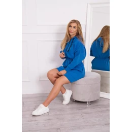 Zateplené šaty s kapucňou chrpovo modré