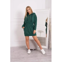Zateplené šaty s kapucňou tmavo zelené
