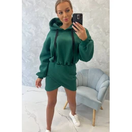 Zateplené šaty s obálkovým spodním dílem tmavě zelené
