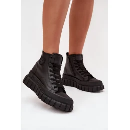 Zateplené Vysoké Tenisky Dámské Na Platformě S Zipem Černé model 21705267 - Boto