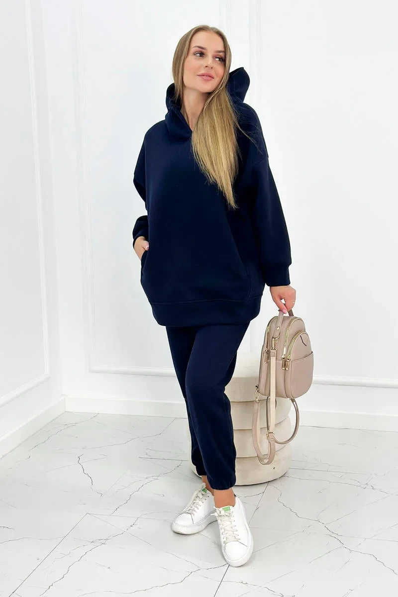 Zateplený set s mikinou s kapucňou tmavo modrý