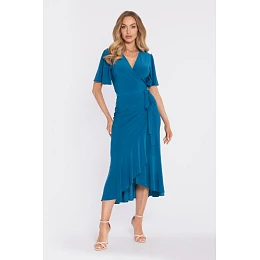Zavinovací midi šaty s volánem a řasením modré model 22040689 - Moe