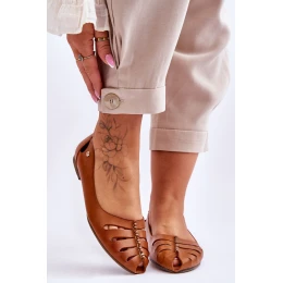 model 21617426 Pohodlné Dámské Kožené Baletky Hnědé - Zazoo