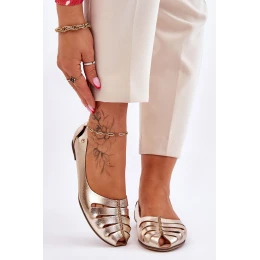 model 21611246 Pohodlné Dámské Kožené Baletky Zlaté - Zazoo