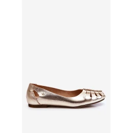 Zazoo 10009 Wygodne Skórzane Baleriny Damskie Złote