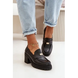 Zazoo 20168 Eleganckie Półbuty Damskie Na Słupku Skóra Naturalna Czarne