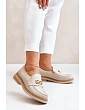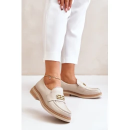 Zazoo 20174 Skórzane Eleganckie Półbuty Damskie Na Płaskim Obcasie Beżowe