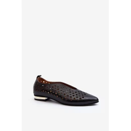 Zazoo 2883 Ażurowe Baleriny Ze Skóry Naturalnej Czarne