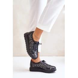 Zazoo 2973 Skórzane Półbuty Na Platformie Z Ażurowym Wzorem Czarne
