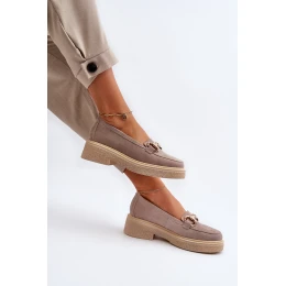 Zazoo 3429 Zamszowe Mokasyny Damskie Z Ozdobą Cappuccino