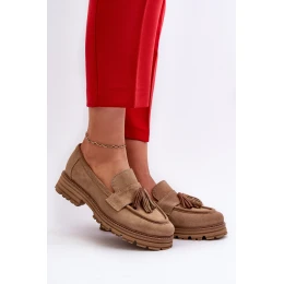 Zazoo 3469 Zamszowe Mokasyny Damskie Z Frędzlami Beżowe