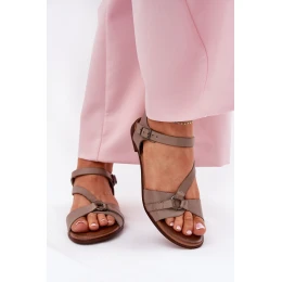 model 21694309 Kožené Dámské Sandály Tmavě Béžové - Zazoo