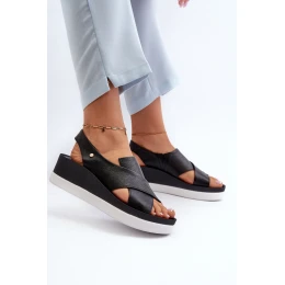 Zazoo 40256 Skórzane Sandały Na Koturnie Czarne
