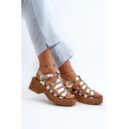Zazoo 40410 Skórzane Sandały Damskie Złote
