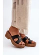 Zazoo 40412 Skórzane Eleganckie Klapki Damskie Ze Złotą Ozdobą Czarne
