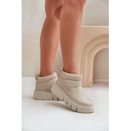 Zazoo 60470 Skórzane Botki Ocieplane Wełną Na Platformie Jasnobeżowe