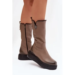 Zazoo 70121 Kožené Dámské Kozačky S Vlnou Tmavě Béžové