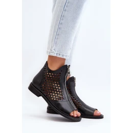 Zazoo 977/L Skórzane Ażurowe Sandały Na Zamek Czarne
