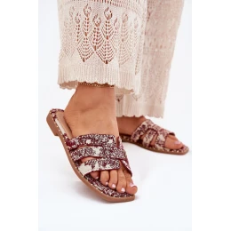 Zdobené Pantofle Na Plochém Podpatku Bordové model 21699515 - Boto