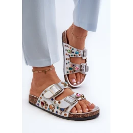 Zdobione Klapki Damskie Z Klamrami S.Barski MY121 Srebrne