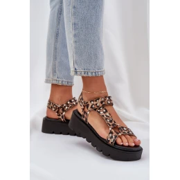 Zdobione Sandały Na Platformie Panterka Brązowe Tatellia