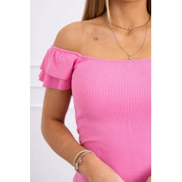 Rebrované šaty s volánikmi vo svetlo ružovej farbe