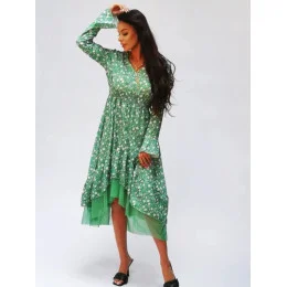 Ann Gissy Vzdušné šaty s lemovanou spodnou časťou Zelená (DLY017)