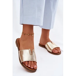 Ženské ploché pantofle s ozdobným detailem V Zlaté Nelmira
