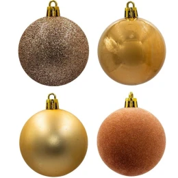 - W zestawie: bombka o średnicy 6cm o 4 fakturach matowe, perłowe, brokatowe i aksamitne