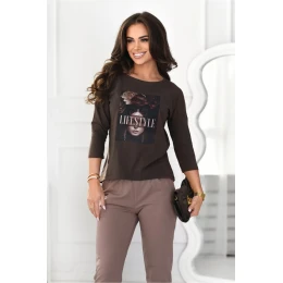 Táto štýlová blúzka s 3/4 rukávmi je kombináciou pohodlia a moderného dizajnu. Je vyrobená z kvalitného úpletu (95 % bavlna, 5 % elastan), je mäkká, elastická a príjemná na dotyk. Dlhší zaoblený zadný diel dodáva zaujímavý vzhľad, zatiaľ čo predný diel je potlačený módnou potlačou, ktorá pôsobí originálne. Je ideálna na každodenné nosenie, do práce alebo na stretnutie s priateľmi.