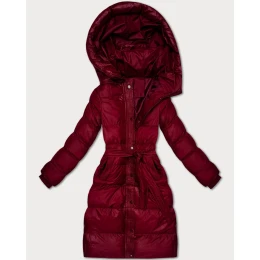 Zimná prešívaná bunda vo vínovej farbe s opaskom J Style (5M3253-1)