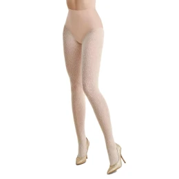 Zimné pančuchové nohavice 1219 Pryma cream GABRIELLA - krémová farba - z elastických vlákien s polyamidovým hodvábom - s rastlinným vzorom - bez viditeľného sedu - bavlnený klin - ploché švy - 60 DEN