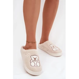Zimní plyšové papuče s medvídkem Béžové Noralie