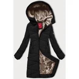 Dámska zimná bunda s kožušinovou podšívkou LHD čierna (LHD-24578)