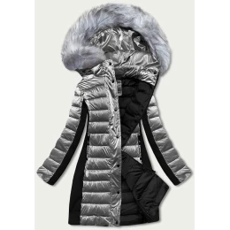Dámska sivá zimná bunda z rôznych lepených materiálov (dk067-45)